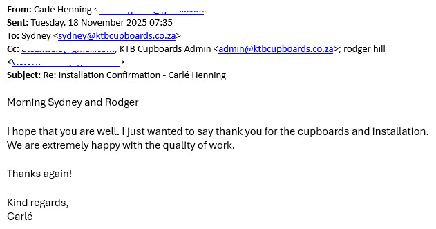 We pride ourselves on delivering top quality cupboards and delighting our customers with superb service. But don't listen to what we say, read what our customers say about us!
