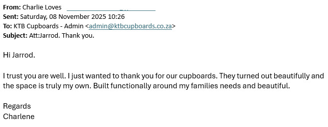 We pride ourselves on delivering top quality cupboards and delighting our customers with superb service. But don't listen to what we say, read what our customers say about us!